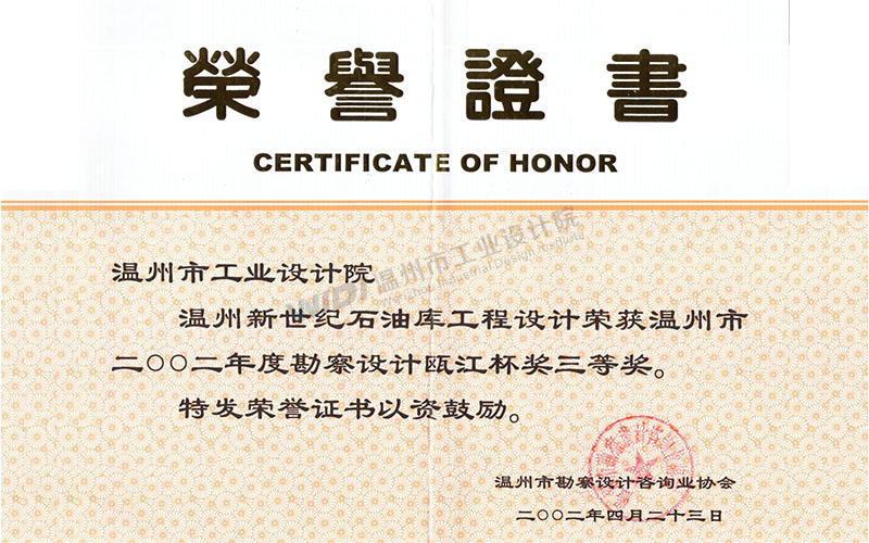溫州新世紀石油庫工程設計 甌江杯三等獎